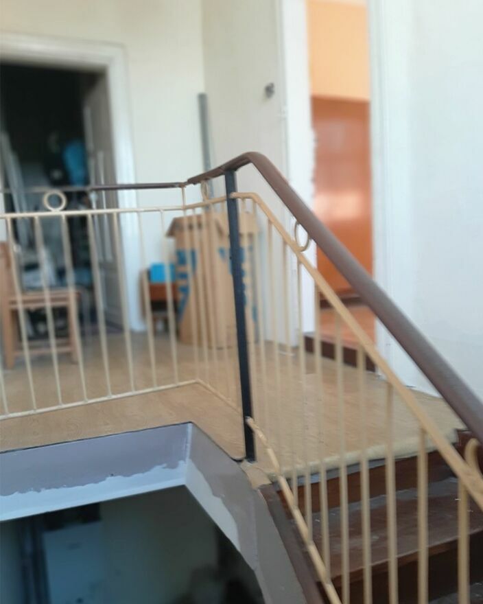 Kondygnacje łączy klatka schodowa z oknem zapewniającym naturalne doświetlenie.
